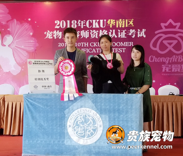 武漢貴族寵物美容培訓學校優秀學員高敏同學榮獲2018年CKU美容認證考試B級特別優秀獎