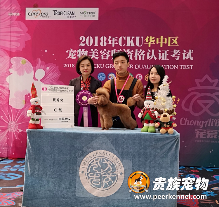 武漢貴族寵物美容培訓學校優秀學員付佳天同學榮獲2018年CKU美容認證考試C級優秀獎